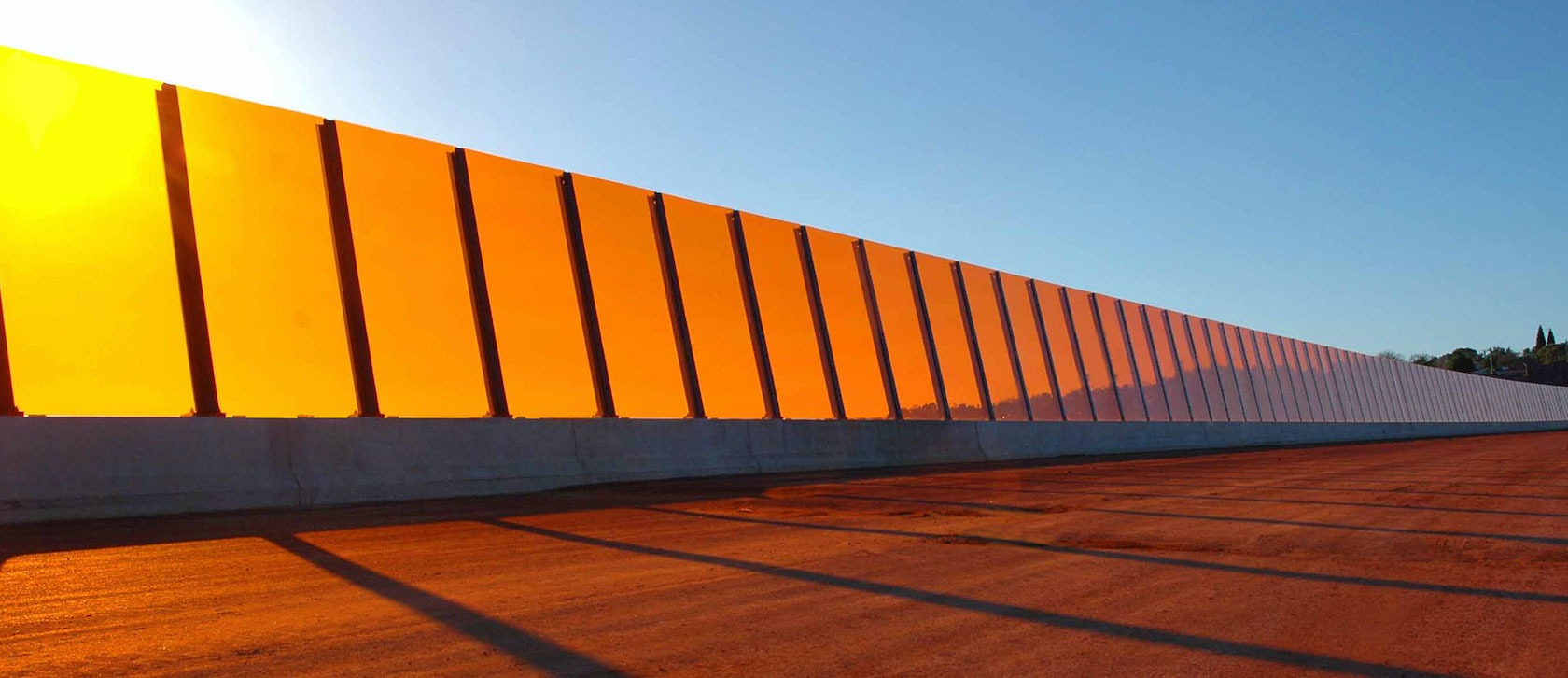 is polycarbonate sheets that reduce noise pollution enormously in railways and highways with heavy traffic, providing healthy and quiet community environments.