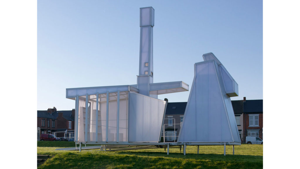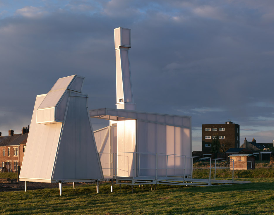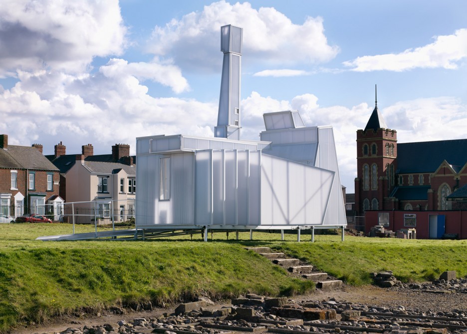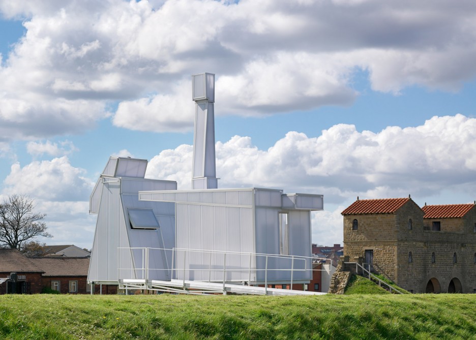 Factory-inspired industrial architecture using steel structure and polycarbonate walls, it is also called the mobile ruin, this polycarbonate beauty is near the Hadrianโs Wall.